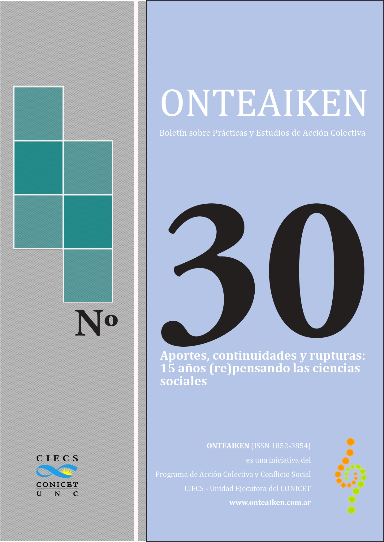El presente número es una edición de balance, revisión y proyección. El boletín Onteaiken cumple 15 años de trayectoria y en esta trigésima edición propone repensar una mirada colectiva que se viene forjando a lo largo de todo este tiempo. Este número nos lleva a recuperar la propuesta teórico-política que se viene construyendo a lo largo de los aportes de cada colaboración. A su vez, recupera la importancia de seguir pensando una teoría crítica social particular donde abordar la acción colectiva y el conflicto social, las políticas sociales y los regímenes de sensibilidad desde y hacia el Sur Global. Las distintas colaboraciones se encuentran en la re-lectura de los números anteriores del boletín para tensionar, desde distintas dimensiones analíticas y trabajos empíricos específicos, la problemáticas actuales que hacen al capitalismo colonizador del siglo XXI. Este boletín es una invitación a recorrer y reconstituir un proceso hacia adelante a partir de múltiples voces que se prestan para seguir desmintiendo el régimen de verdad hegemónico instaurado por la reproducción de la economía política de la moral neocolonial.